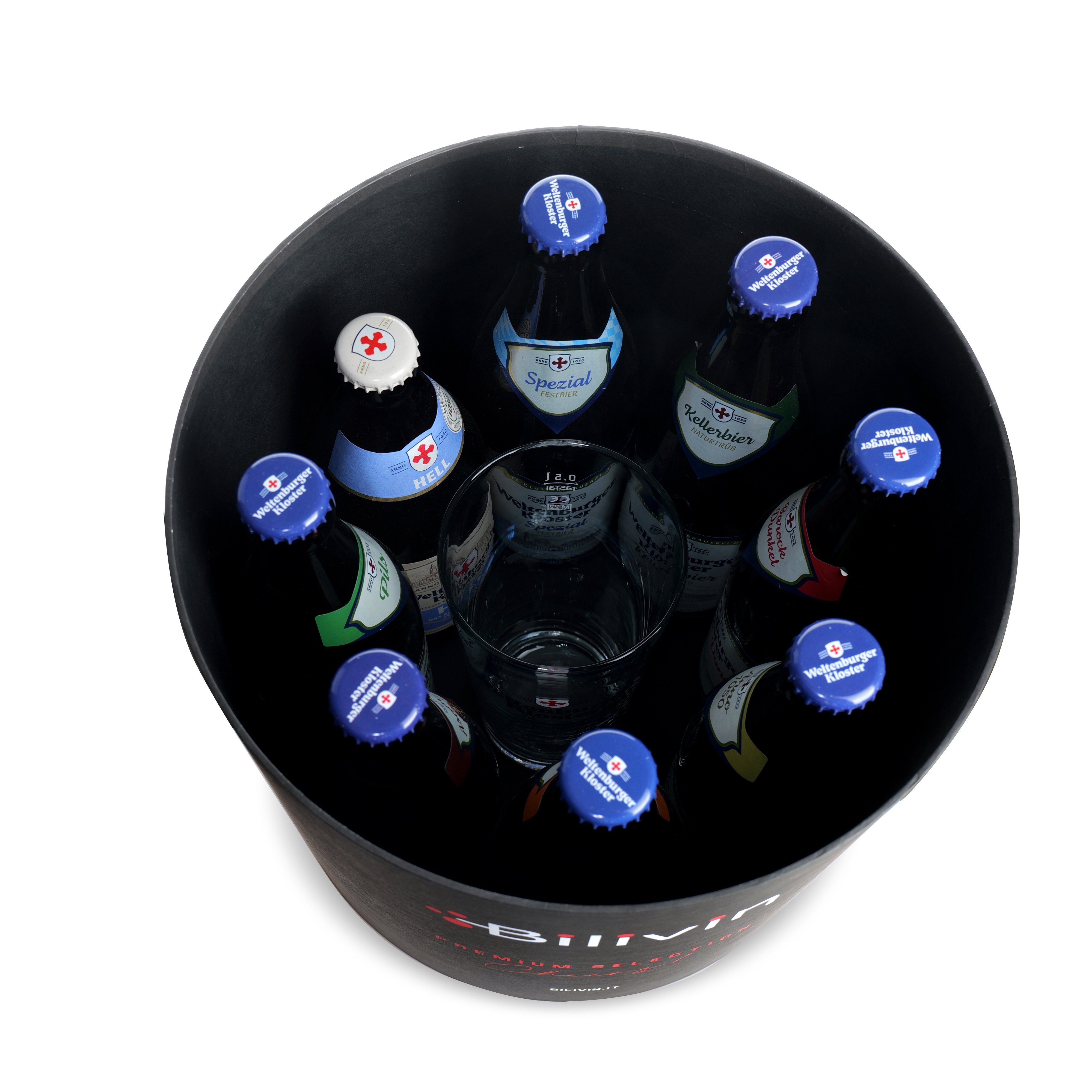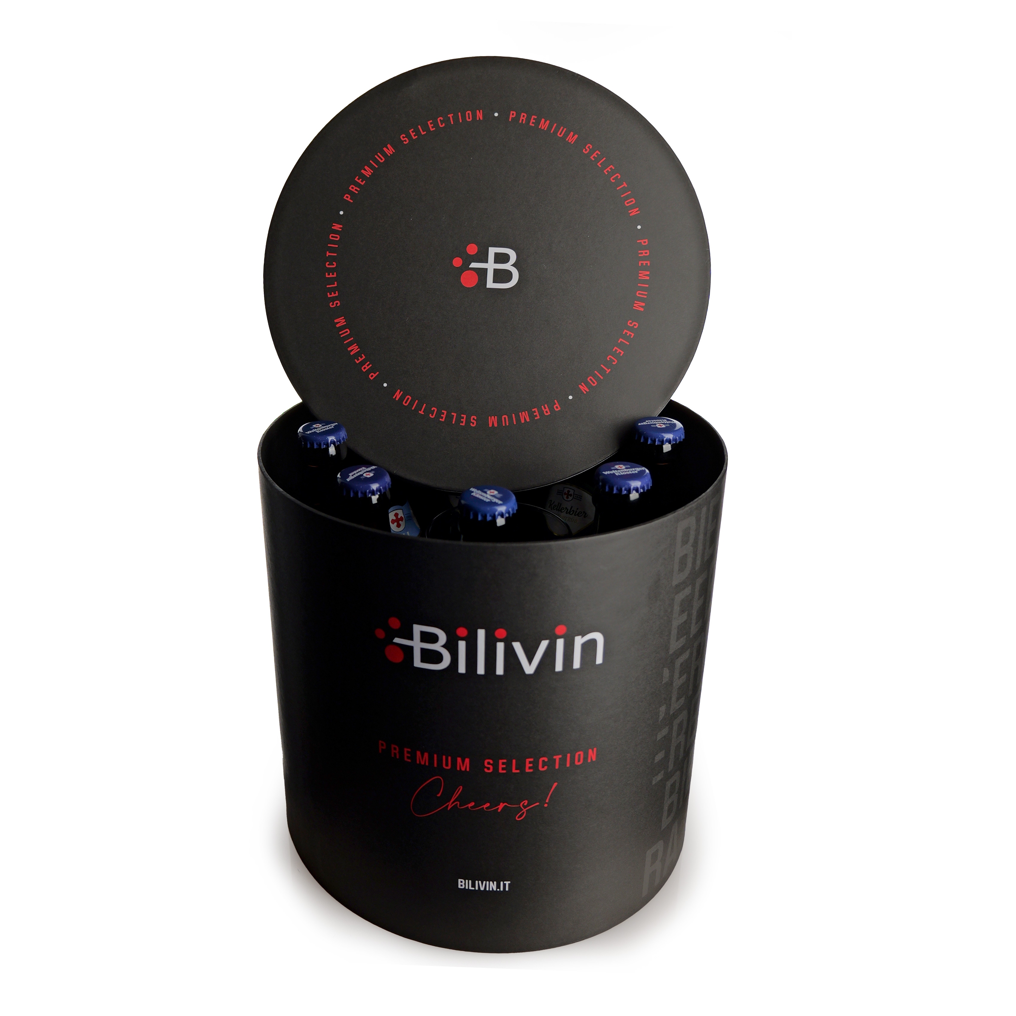 La nostra esclusiva Confezione Natalizia Bilivin è un capolavoro di design e qualità: un elegante cilindro in cartone nero che custodisce con cura 8 birre artigianali e un raffinato bicchiere da degustazione. Ogni dettaglio è stato studiato nei minimi particolari, dalle finiture di pregio al tappo coordinato, per offrire un'esperienza unica ed esclusiva.
