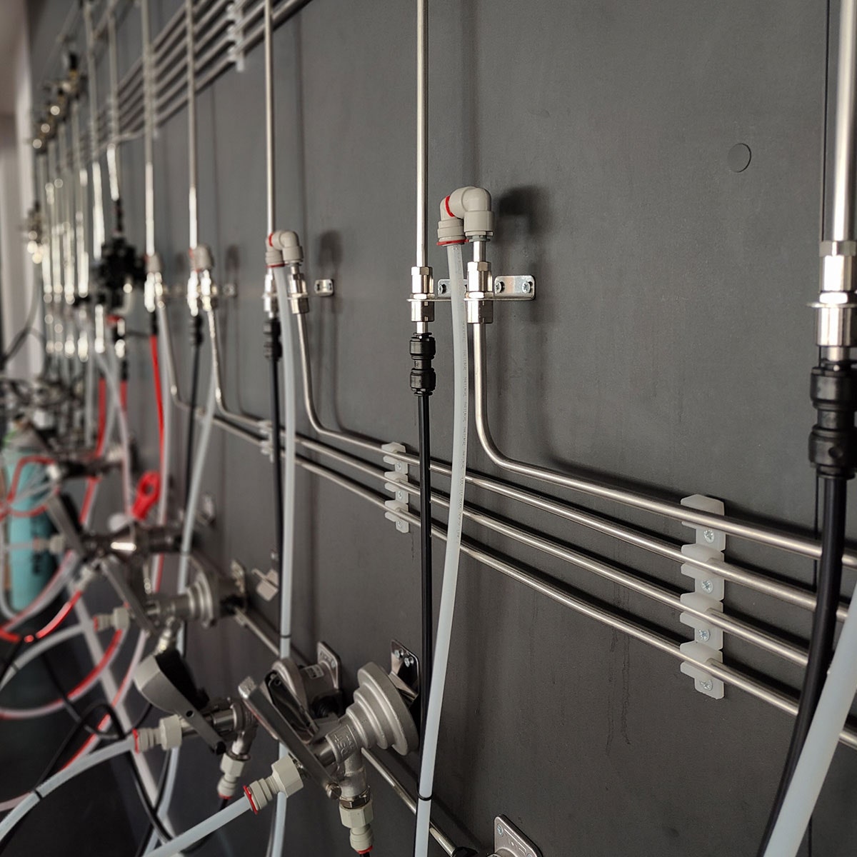 Grazie alla nostra esperienza siamo riusciti a montare impianti in spazi dove nessuno era stato in grado di posizionarli, garantendo comunque resa ed efficienza. Sono tutti impianti di nostra proprietà, non ci affidiamo ad altri perché vogliamo essere responsabili di ciò che facciamo. Impianti a elevati standard performanti, dal design accattivante e sempre in linea con le normative igienico-sanitarie: colonnine, motori, teste di risciacquo, tutto è scelto tenendo sempre presente che con la birra non si scherza e non si improvvisa.
